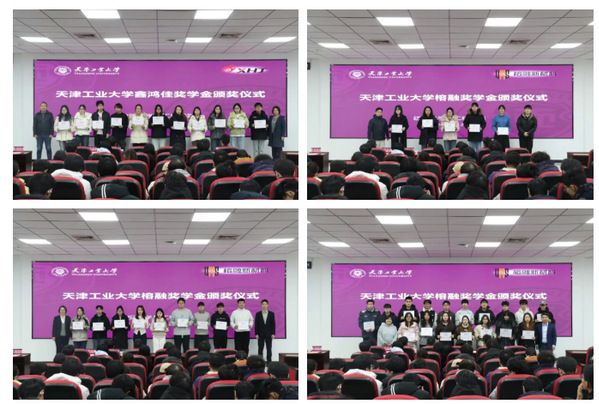 本次奖学金评选根据天津工业大学榕融奖学金和天津工业大学鑫鸿佳奖学金评选要求,最终评选出榕融奖学金获得者31名,鑫鸿佳奖学金获得者12名。出席颁奖仪式的领导、老师为获奖同学颁发了荣誉证书并合影留念。本次奖学金设立工作得到了天津市天津工业大学教育发展基金会的大力支持。