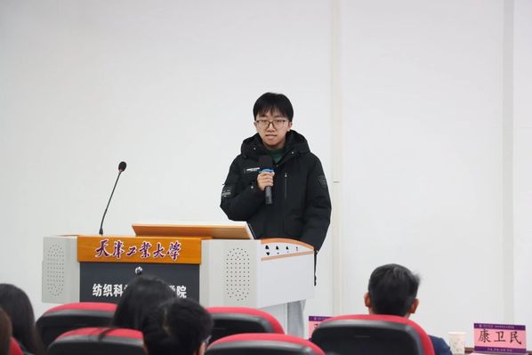 吴其彤结合自身成长经历,勉励学弟学妹珍惜大学韶华,无论顺境逆境,都要专注于自我提升与探索,勇毅追寻人生价值,深耕纺织专业领域,在行业赛道上奋勇争先、笃行不怠。